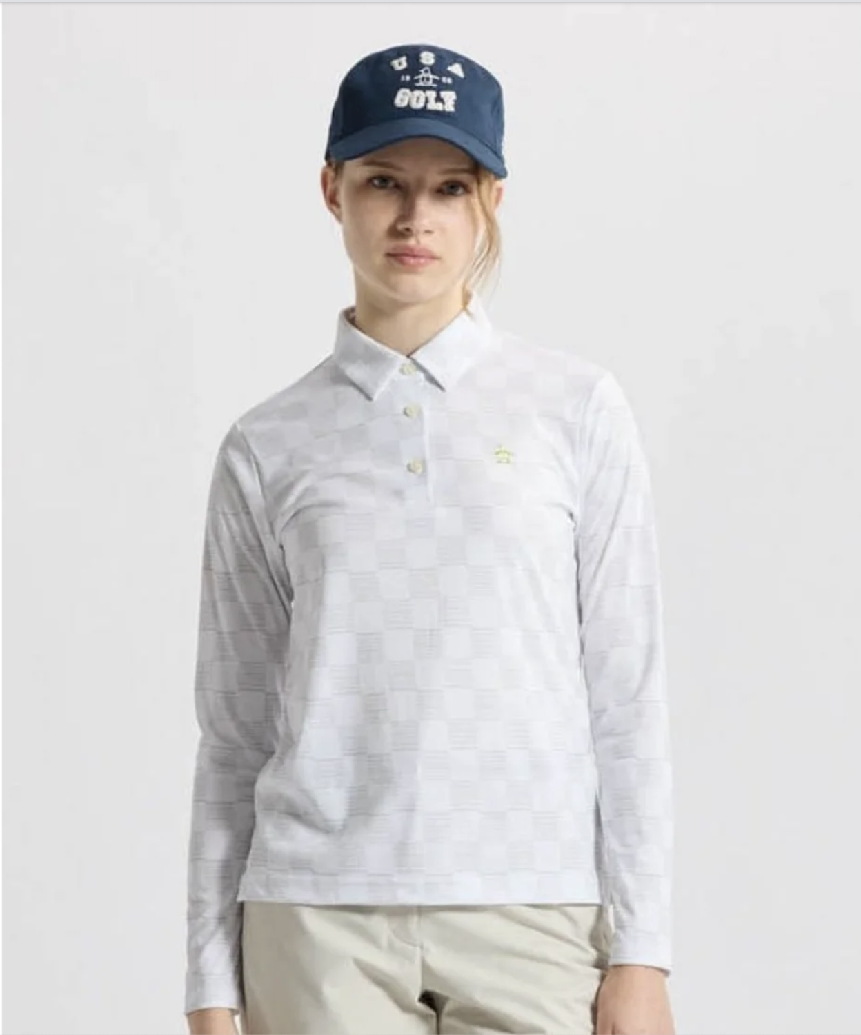 Sunscreen NIR 総柄プリントテーラードスムース長袖ポロシャツ