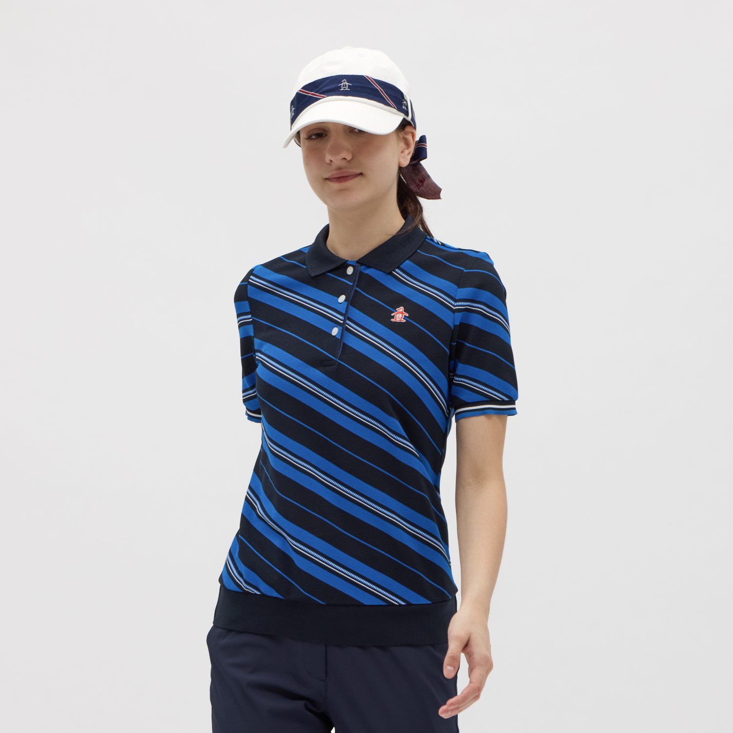 吸汗速乾 バイアスストライプ裾リブ半袖ポロシャツ