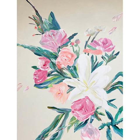 草花をモチーフにしたものや「ズレ」た風景、日常生活から着想を得た作品のほか自身の作品をプリントした大判の布といった横断的なメディアで制作を行う。 |